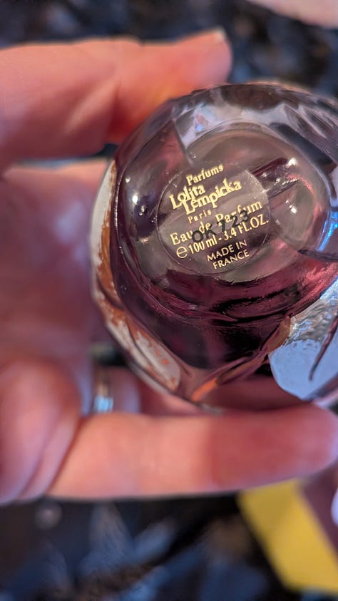 My panicking finally led me to this genius idea: Asking a friend to send me a photo of the sticker on her ancient, early 2000s bottle of Lolita Lempicka. LOL. To my relief: No “Pacific Creations,” no “Leslie Leonor,” just “Lolita Lempicka Paris.” So at least I had one good hunch.